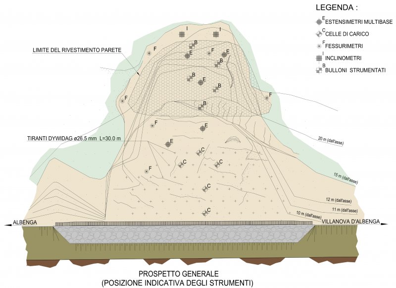 Dados los problemas presentados durante la fase de estudios, se decidió instalar un adecuado sistema de monitoreo y de control de la estática del talud.