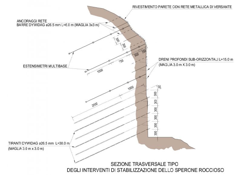 De las exploraciones, estudios geológicos y geomecánicos efectuados, se encontró una situación de riesgo elevado para los usuarios de la carretera, por lo tanto se diseñaron y realizaron todos las obras necesarias para garantizar la seguridad sobre la vía al personal de la empresa durante los trabajos y sucesivamente a los usuarios de la vía.
