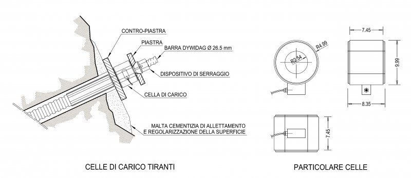 - medida de las solicitaciones en los cabezales de los tirantes, mediante celdas de carga anulares instaladas en obra cerca a las placas;