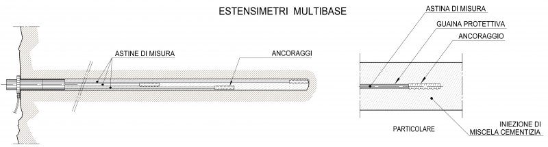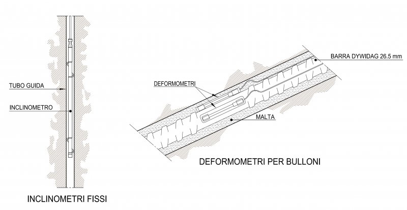 - medidas de las deformaciones de porciones del frente rocoso mediante la instalación de extensómetros de puntos múltiples;