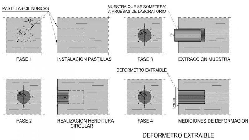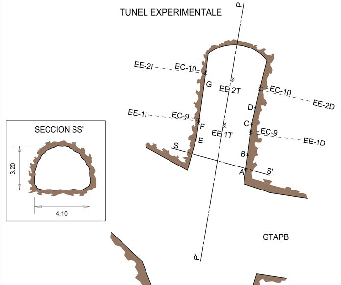 Sucesivamente a la excavación de la galería fueron dotadas algunas secciones con extensómetros a dos bases ejecutando al mismo tiempo mediciones de convergencia. Además se desarrollaron pruebas de decompresión en foro.