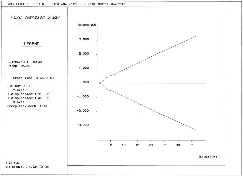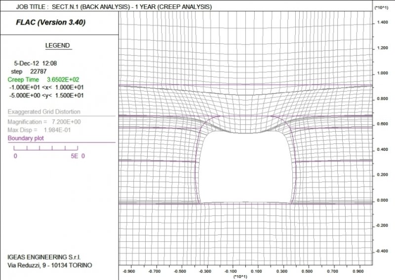 Además fueron analizadas las mediciones, realizadas en el pasado, relativas a la estabilidad de las galerías de explotación con especial atención a su comportamiento reológico, las cuales han llevado a la definición de las leyes de comportamiento viscoso.