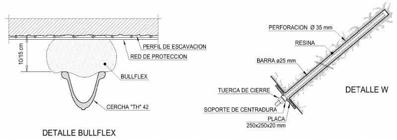 Las cerchas utilizadas fueron del tipo ''TH'', suficientemente deformables y capaces de combinarse fácilmente al sistema de bulones llamado Bullflex. Dichas cerchas tendrán una mayor carga en el tiempo debido al efecto ''creep''.