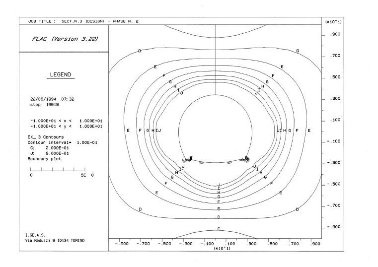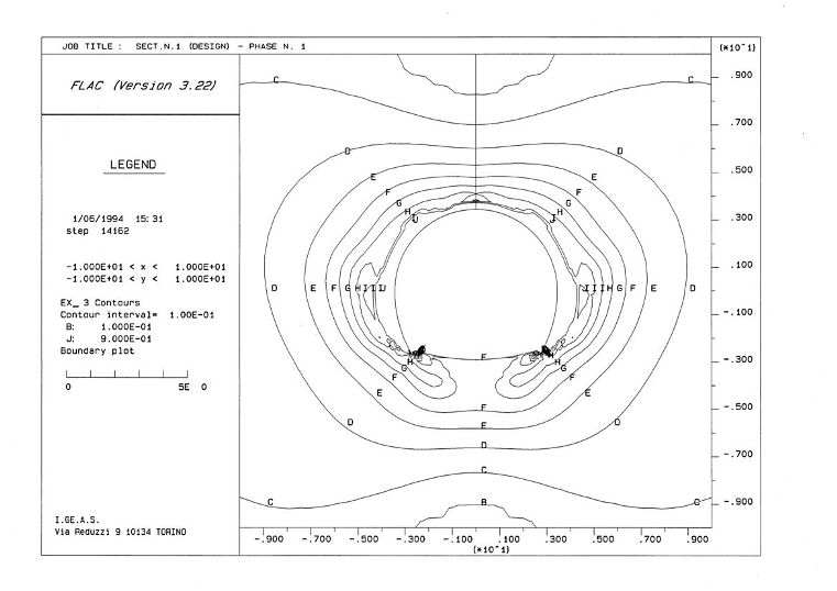 El macizo rocoso objeto de estudio se caracteriza por un fuerte comportamiento de naturaleza viscosa, causado por un proceso de deformación que evoluciona en el tiempo de manera irreversible con las consiguientes problemáticas de estabilidad en las galerías.