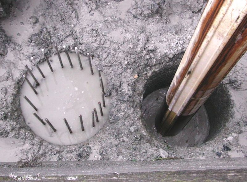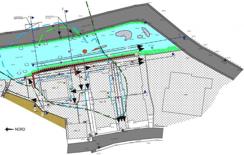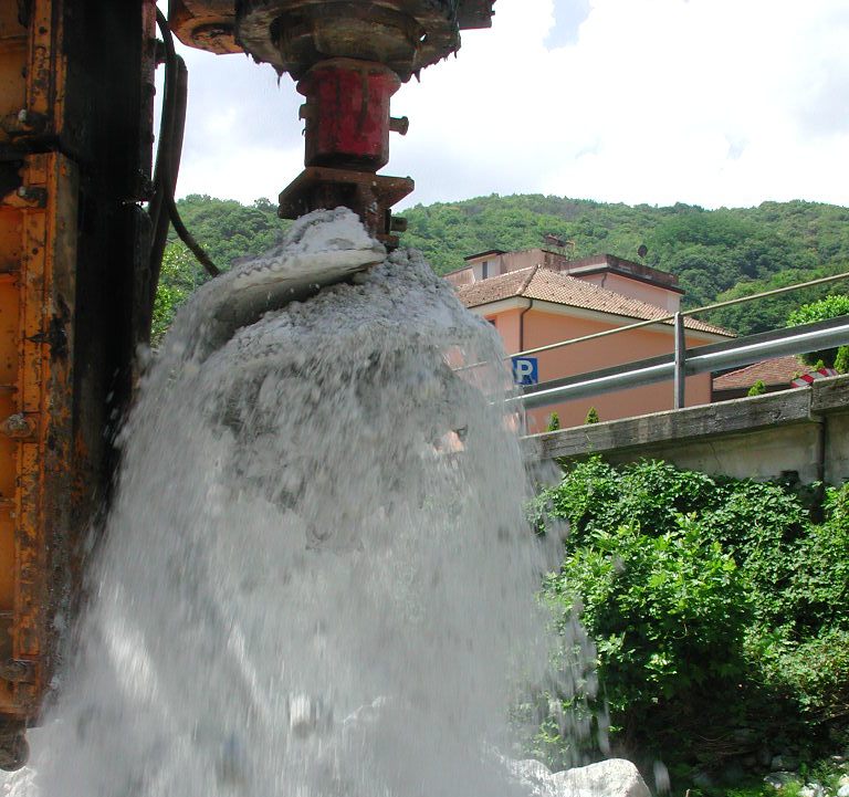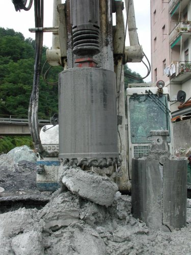 La anterior pantalla se ha integrado a otras tres pantallas ortogonales creando de esta manera un compartimento de terreno con la garantía que se intercepten todos las filtraciones de agua subterránea. Creada esta interceptación, se procedió luego al taponamiento de las cavidades con hormigón y la inyección de una mezcla de cemento - lodo bentonítico.