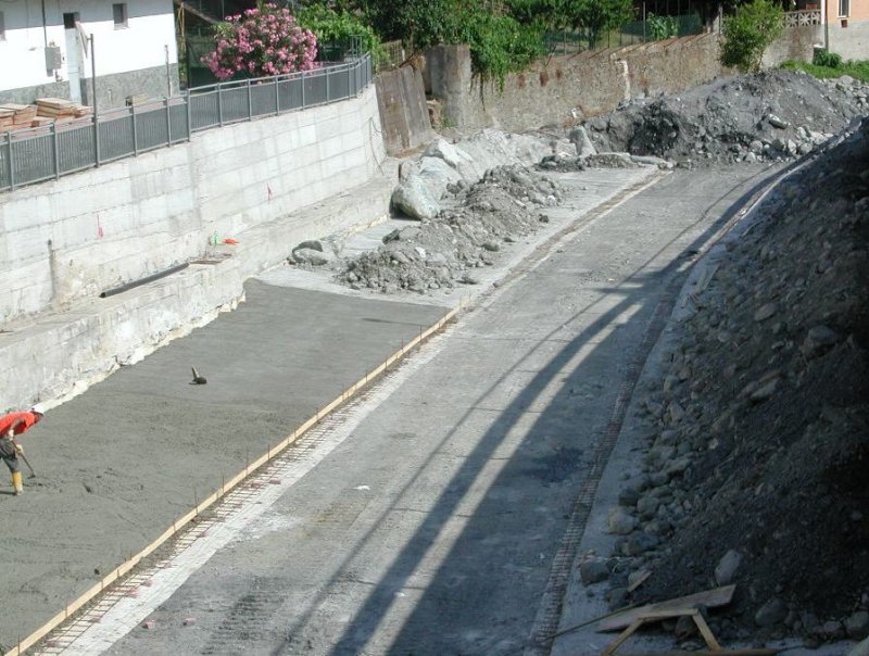 Finalmente el lecho del torrente fue revestido con hormigón y rocas, buscando siempre reducir cualquier posibilidad de infiltración del agua en el subterráneo.