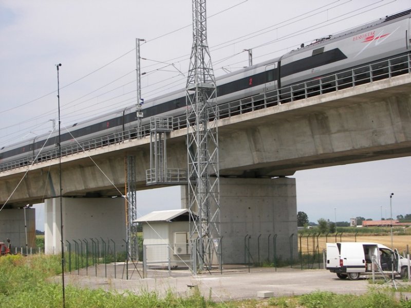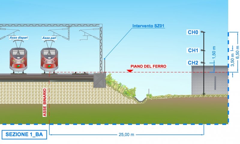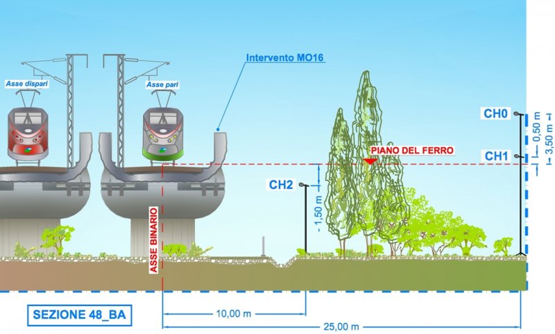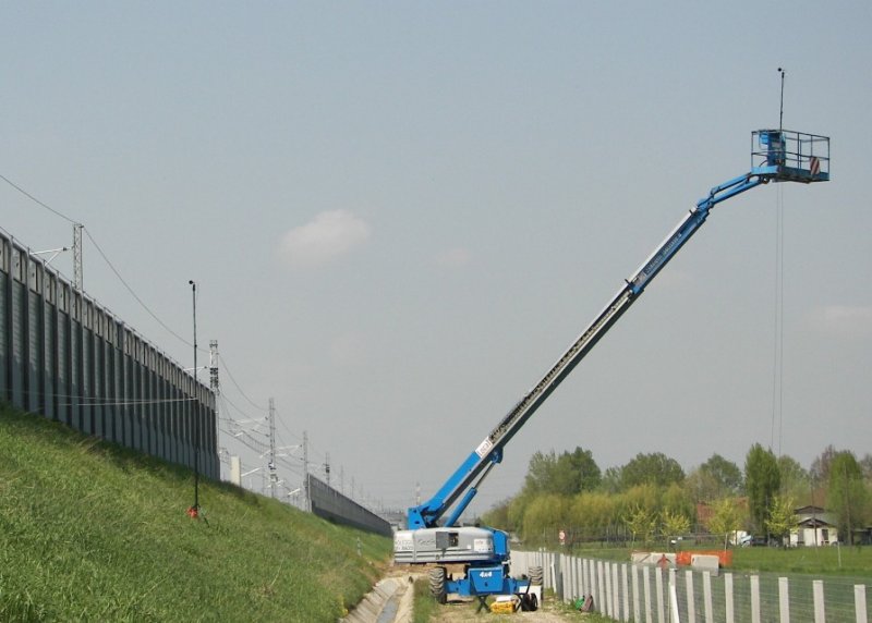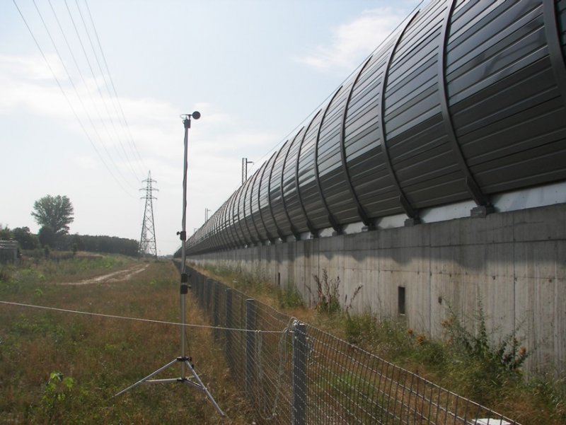 Para evaluar la eficacia en términos acústicos de las barreras antirruido instaladas a lo largo de la línea férrea de alta velocidad Milán - Bolonia, se efectuaron algunos monitoreos para verificar el nivel de ruido generado por el tránsito ferroviario donde han sido posicionados dichos receptores.
