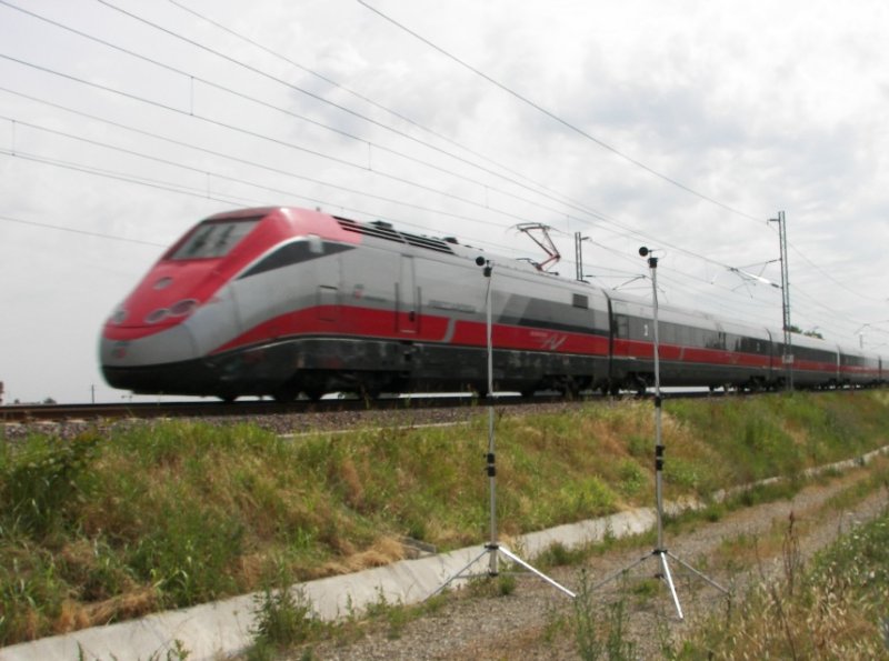 El estudio ha previsto en primer lugar, la caracterización experimental de las emisiones acústicas del material rodante de tipo ETR 500 que transita por la línea férrea Milán - Bolonia. Las mediciones se efectuaron en las secciones de estudio preestablecidas, es decir detrás de las mismas barreras a examinar. Los ensayos experimentales se realizaron según las directrices sugeridas en la norma ISO 3095 ''Measurement of noise emitted by railbound vehicles''.
