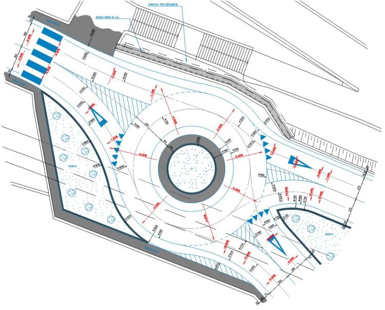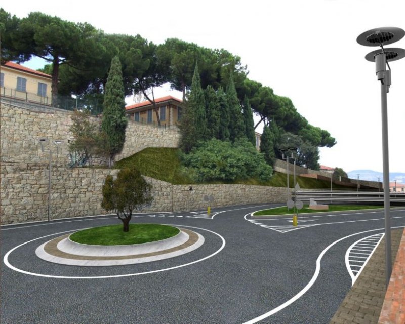 Con el ánimo de alcanzar los objetivos trazados, es decir mejorar las condiciones de seguridad en la intersección vial entre la Carretera Estatal N.1 ''Aurelia'' y la Carretera Provincial N. 24, se decidió realizar una rotonda. Ésta, a causa de la gran cantidad de problemas ambientales presentes, si bien perfectamente funcional, presenta modestas dimensiones; tiene un diámetro interno de 8 m y calzada de 6 m de ancho compuesta por un carril de 4 m y dos bermas de 1 m cada una.